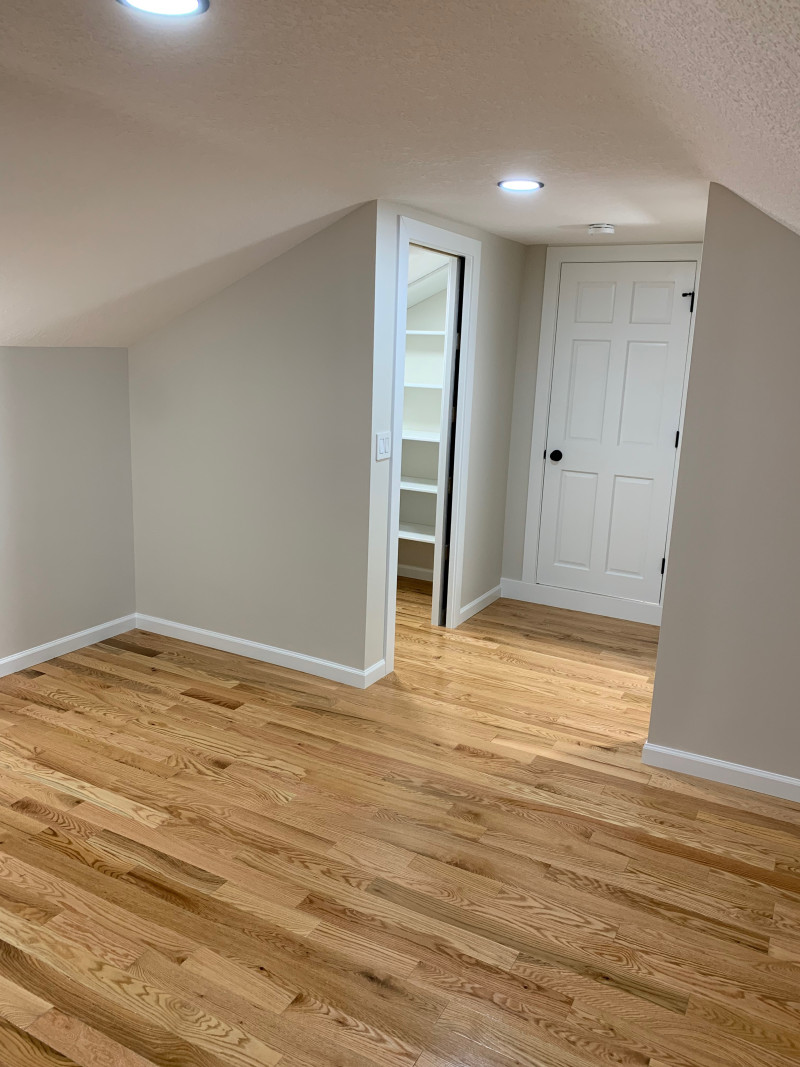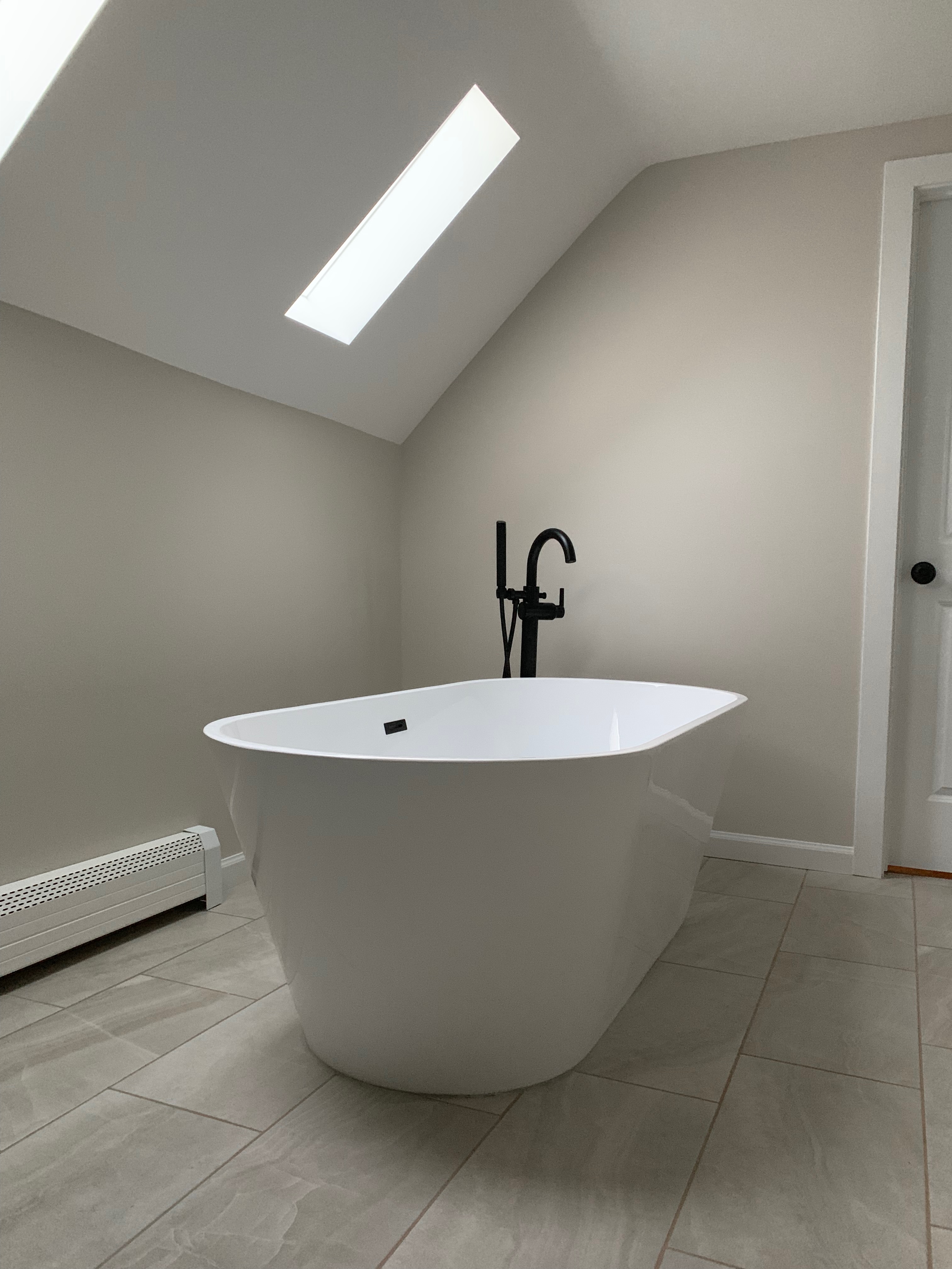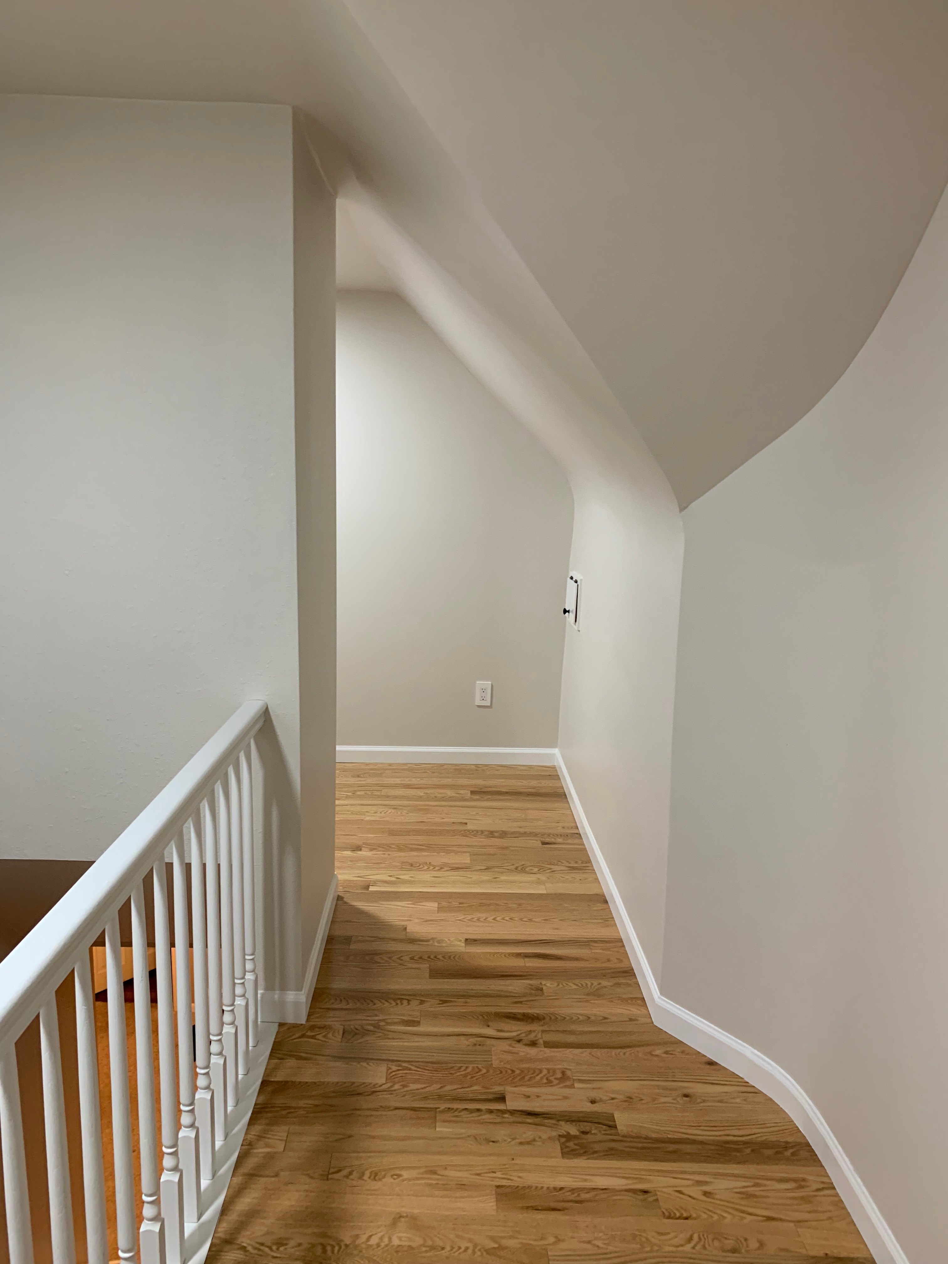 This project was all about creating a tranquil primary bed and bath space from a poorly designed and jarringly outdated upstairs space. The existing layout served as various storage spaces, a bath, and bed all accessible from a hallway in the center. By absorbing the hallway into the bath, the primary bed became an en suite accessible via the bathroom.