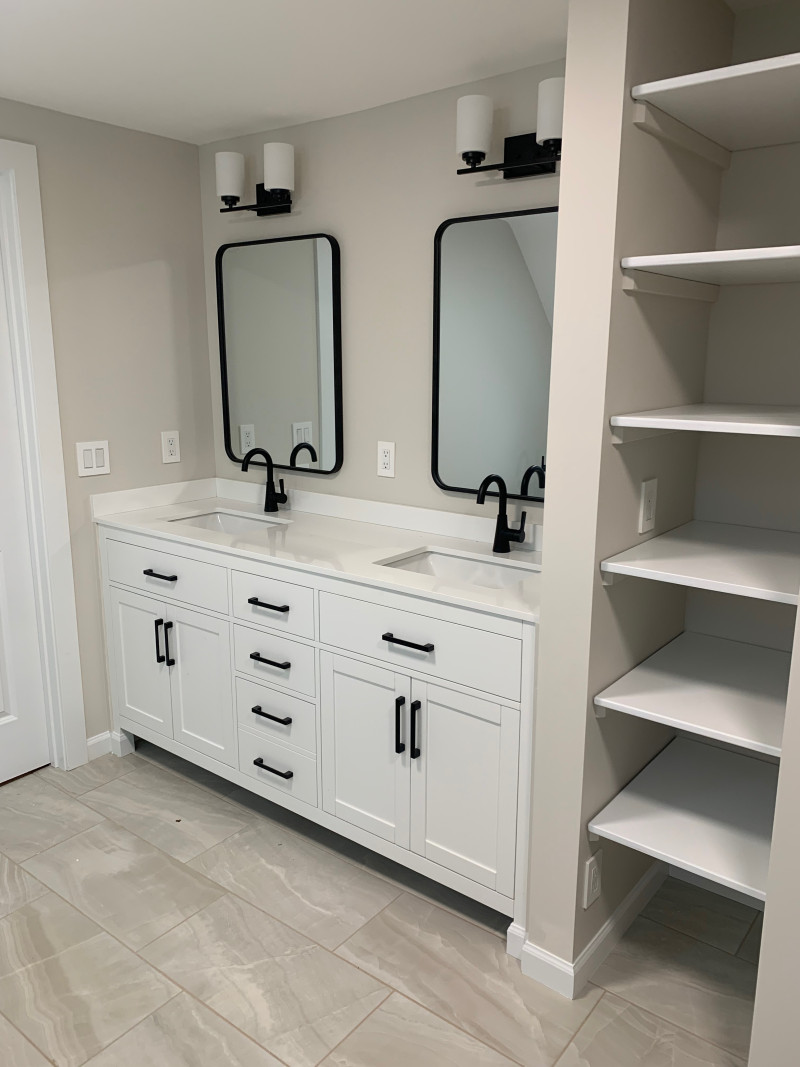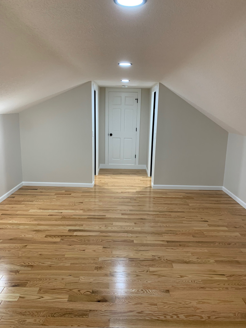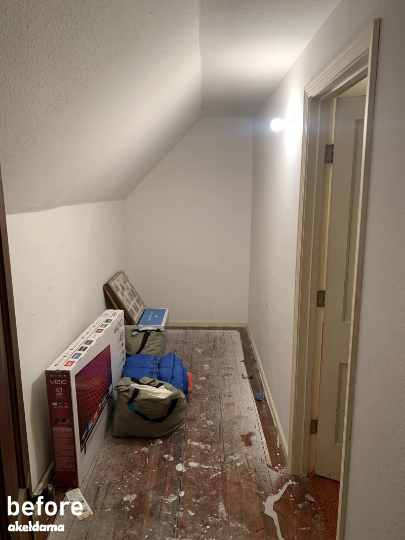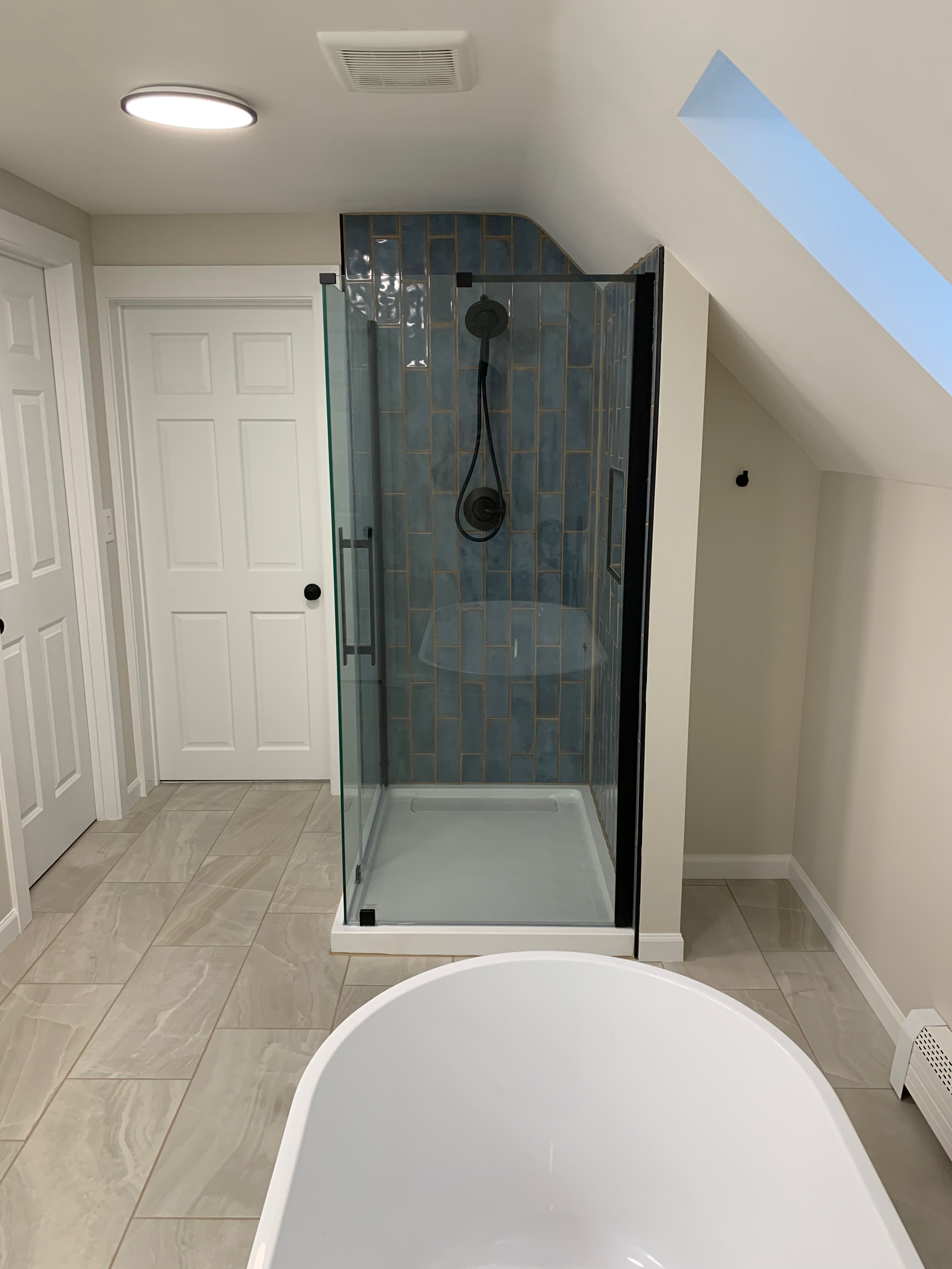 This project was all about creating a tranquil primary bed and bath space from a poorly designed and jarringly outdated upstairs space. The existing layout served as various storage spaces, a bath, and bed all accessible from a hallway in the center. By absorbing the hallway into the bath, the primary bed became an en suite accessible via the bathroom.