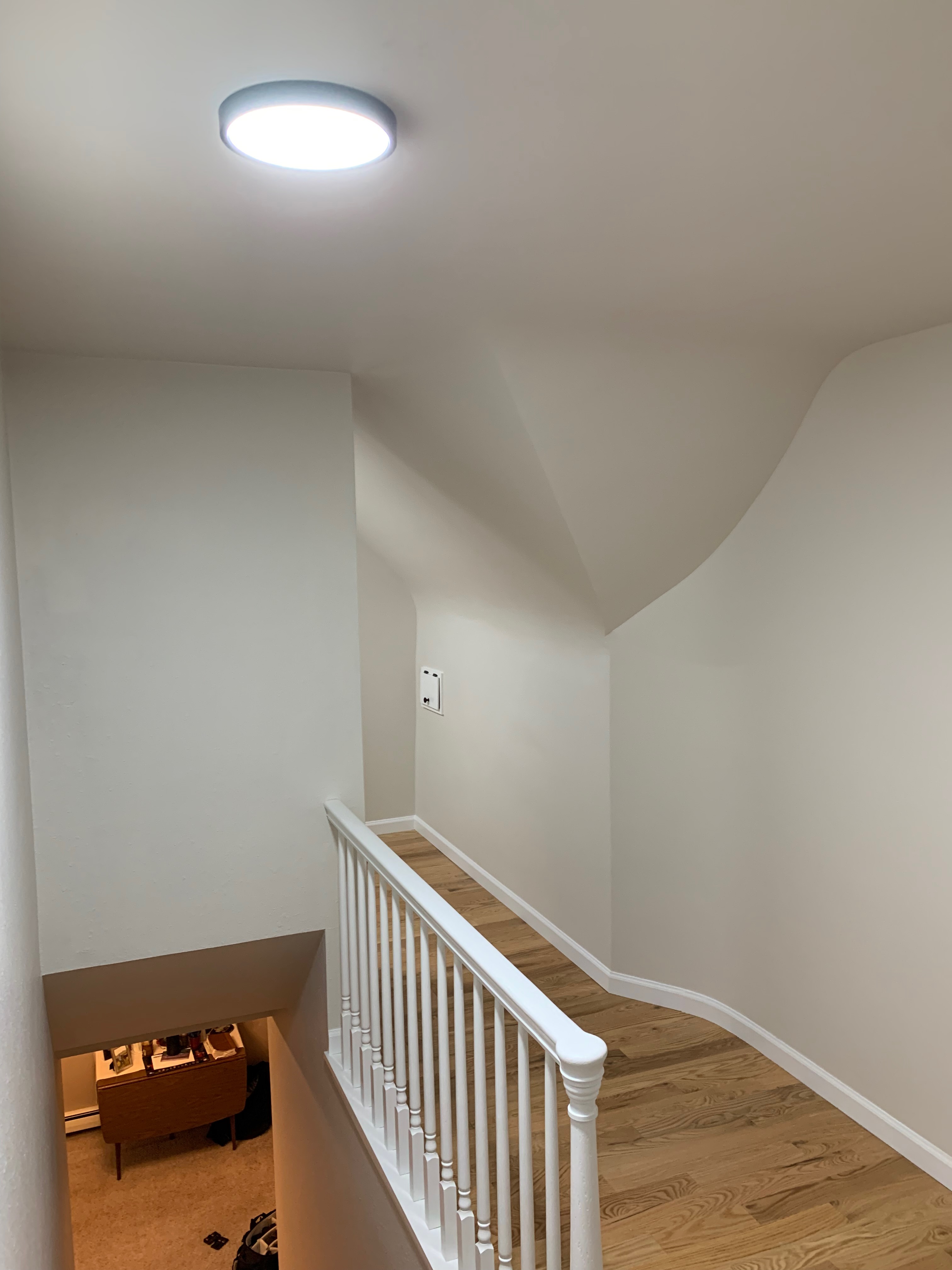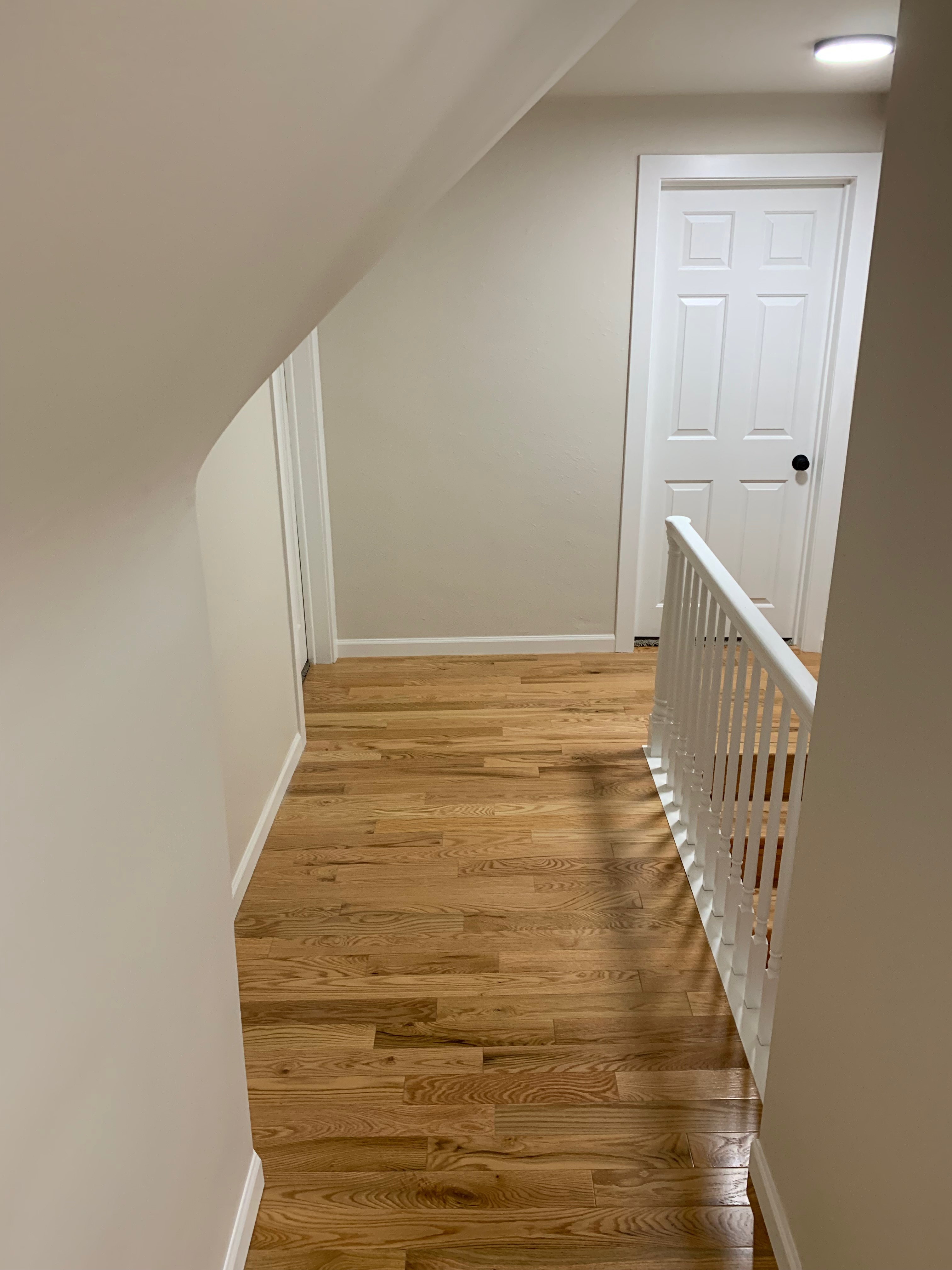 The larger bath is accentuated by the skylights and the entire space is better illuminated with all new lighting. Hardwood throughout and tile in the bath provide longevity and beauty, complemented by six panel doors and matte black hardware. Further, storage space was preserved with clever framing and pocket doors improving accessibility.